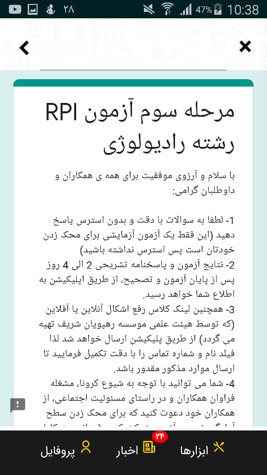 (بنا به دیرکرد اساتید در ارسال پاسخنامه ممکن است تاخیر در بارگزاری آن در اپلیکیشن وجود داشته باشد )