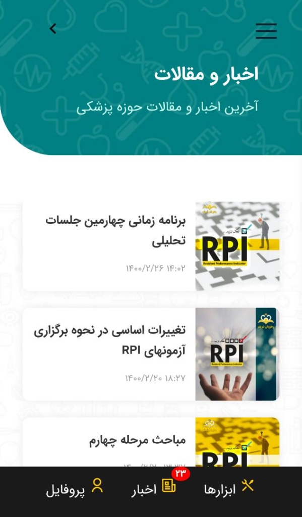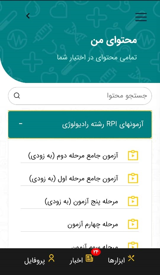 2-همانطور که در آموزش استفاده از محتوای هوشمند توضیح داده شد ، آزمونهای RPI نیز مانند بقیه خدمات ارائه شده در موسسه در بخش محتوای من برای کاربران قابل مشاهده است .